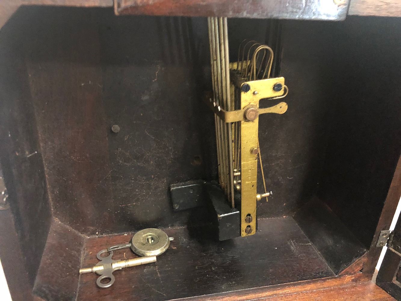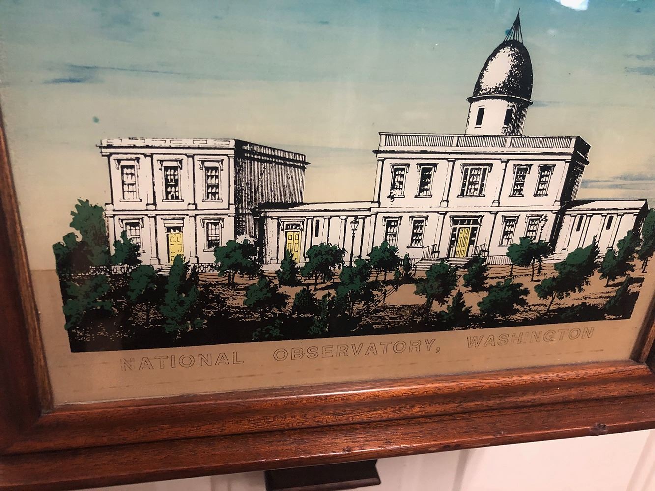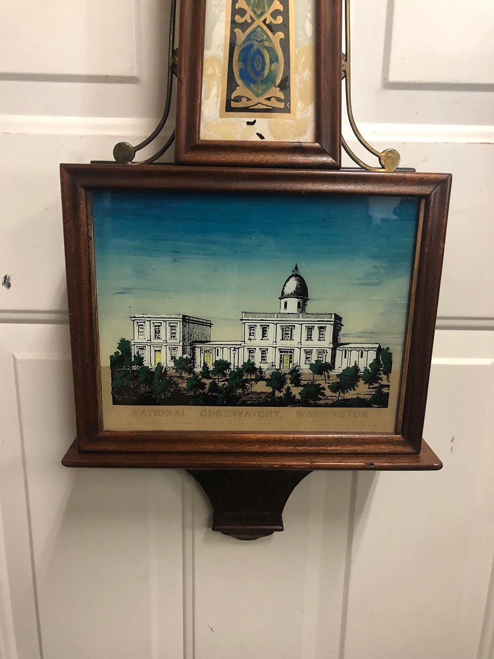New Haven Banjo Clock, 3 wind westminister chimes, beautiful eagle fine, “The Washington Chime” made by the New Haven Clock Co. Octagon shaped face, silver dial, nice reverse painted tablet with has National observatory, Washington.