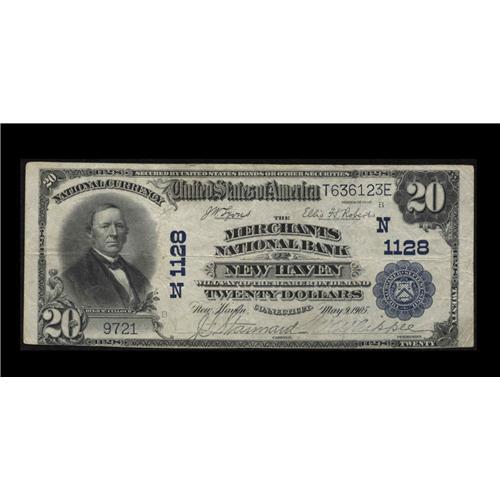 New Haven, CT - $20 1902 Plain Back Fr. 650 The Merchan New Haven, CT