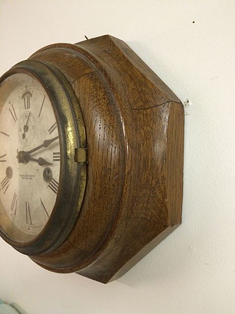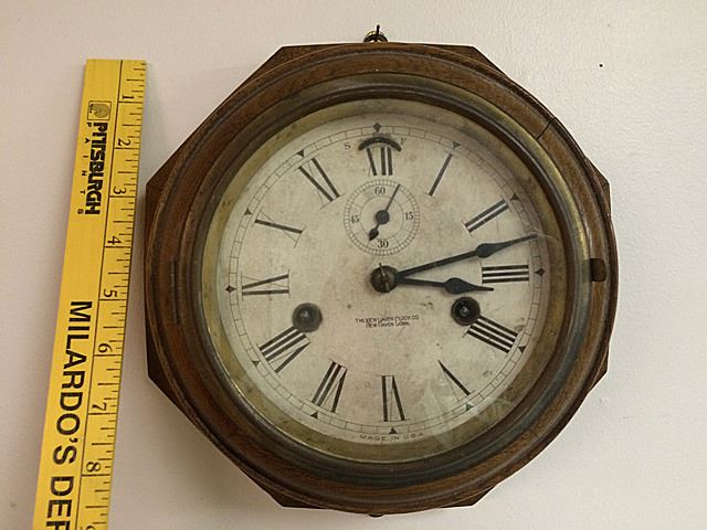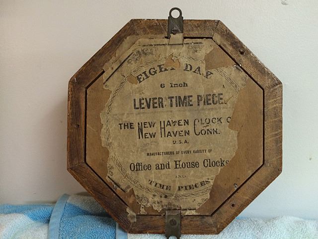 New Haven Clock Co., New Haven, CT octagon Gallery clock with second dial, label on back "Eight Day 6 Inch Lever Time Piece, The New Haven Clock Co., New Haven, Conn."
