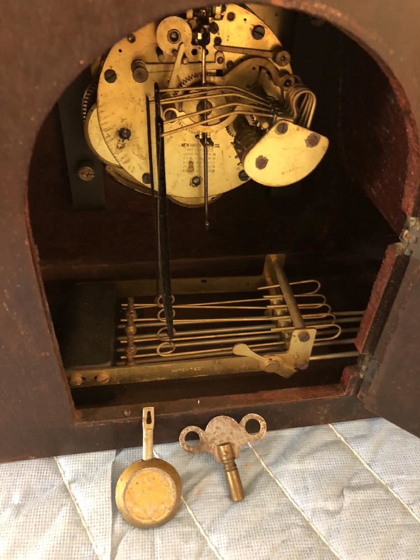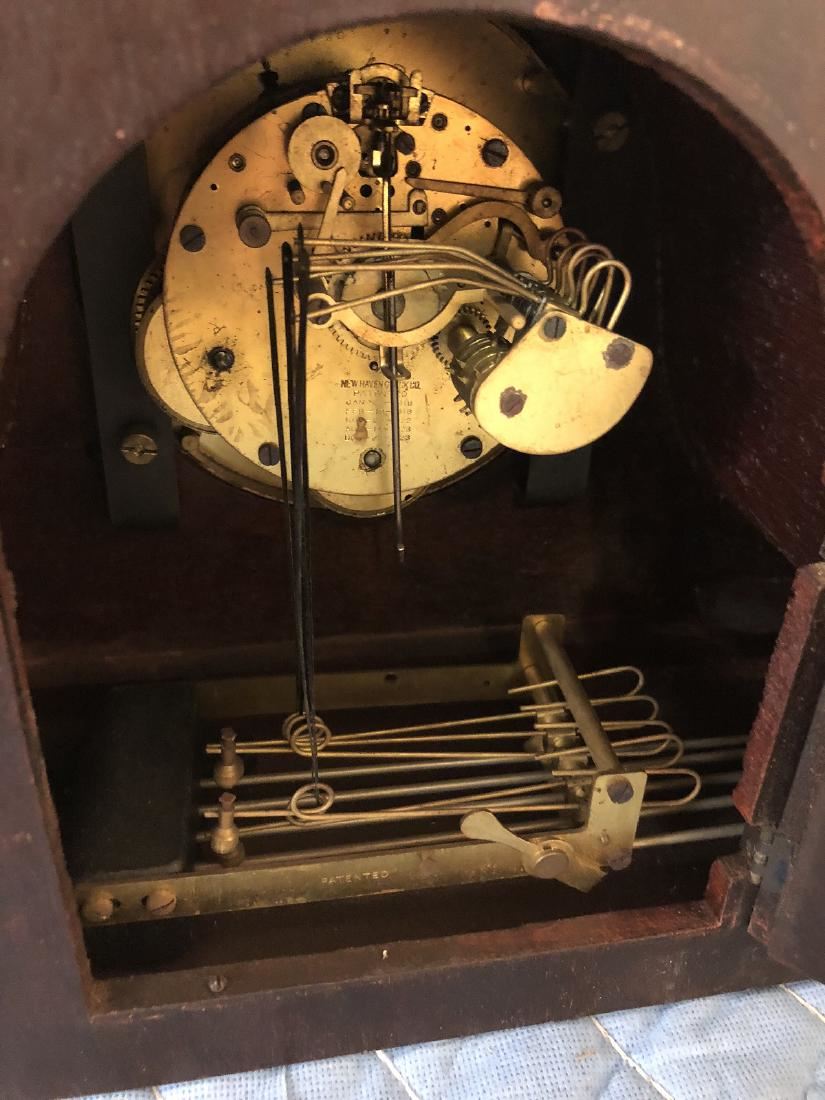 New Haven Clock Co. Mahogany triple wind with Westminster chimes.