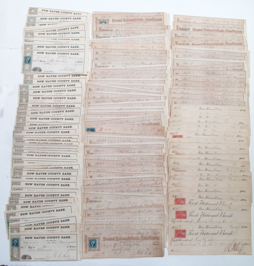 Lot of over 100. New Haven County Bank, Second National Bank of New Haven, and First National Bank. All have revenue stamps.City: New HavenCounty: New HavenState: CN