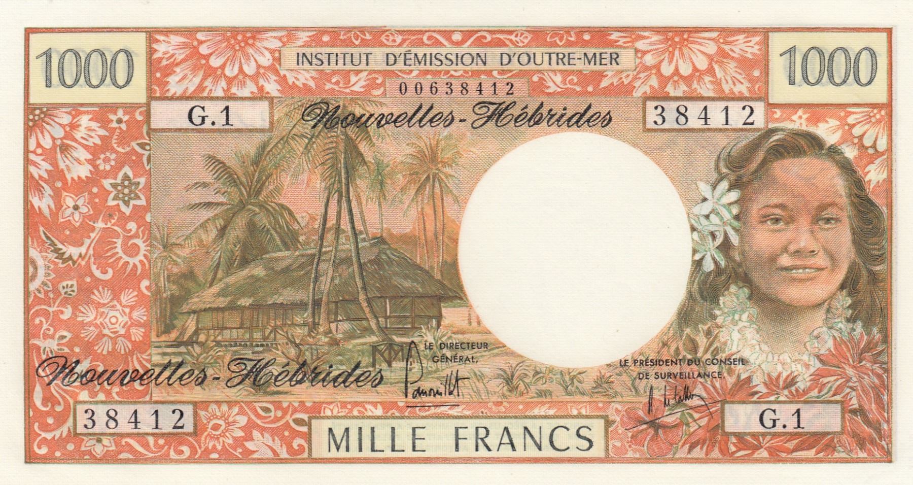 New Hebrides, 1.000 Francs, 1975, UNC, p20bbr/British and French Administration, serial number: 38412/G.1