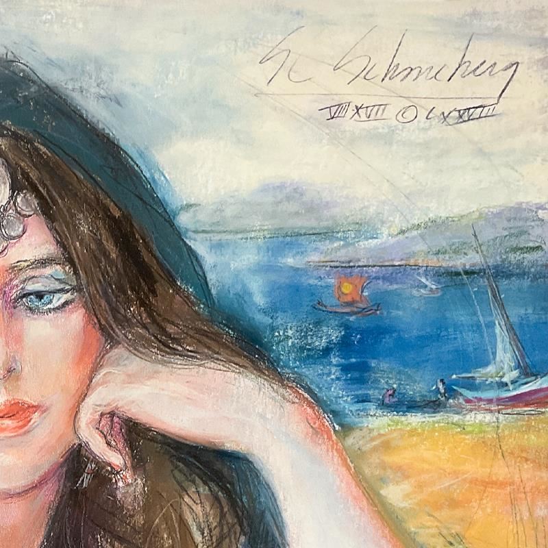 "New Hebrides" is an original pastel painting on paper by Sheldon Schoneberg (1926-2012), hand signed by the artist. Includes Letter of Authenticity. Measures approx. 20" x 24" (image). Due to the nature of pastel and the age of the piece there may be minor imperfections on the image but the piece is in overall good condition.