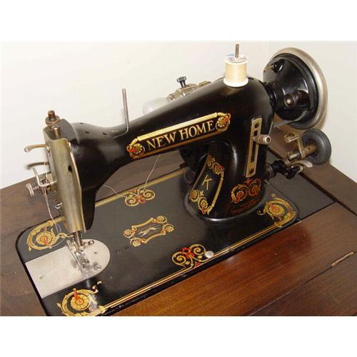 Circa 1910 New Home sewing machine with nice fold over work table stand. It is electric in excellent working condition and comes with a speed pedal and work light. The work table has two drawers for storing all your sewing machine acquirements. When not in use, the sewing machine conveniently folds into the table, and the 54 x 14 inch work surface folds over to a 26 x 17 inch surface. This machine would make a great addition to any household or collection. Size: 30.75 inches height, 26 inches (54 when table opens), 17 inches depth. ***NOTE: This item is available for local pick-up only 11558 Long Island.