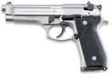 FAMILY:92 Pistol Series MODEL:92FS Inox TYPE:Semi-Auto Pistol ACTION:Double / Single Action FINISH:Stainless STOCK/FRAME:Alloy Frame STOCK/GRIPS:Black Plastic CALIBER/GAUGE:9mm CAPACITY:15+1 # OF MAGS:2 MAGAZINE DESC:15 rd. BARREL:4.9" OVERALL LENGTH:8.5" SIGHTS:Fixed SAFETY:Slide Mounted Manual/Decocker ADDL INFO:Made in USA GUN CASE:Plastic