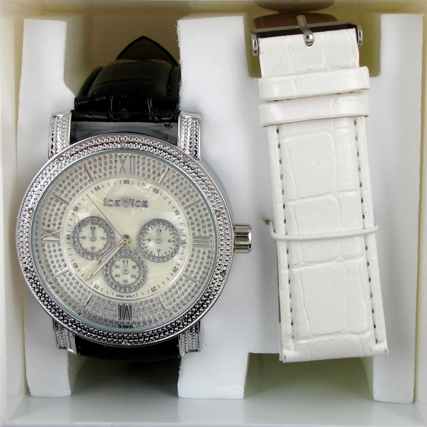 Brand new mens bling style with 10 diamonds in bezel; 2 different color bands; box and papers; retail $1895