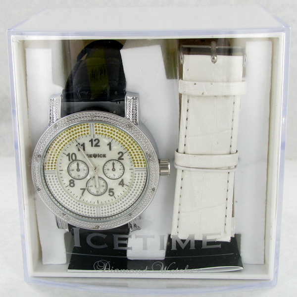 Brand new mens bling style with 10 diamonds in bezel; 2 different color bands; box and papers; retail $1895