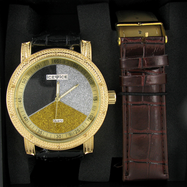 Brand new mens bling style with 10 diamonds in bezel; 2 different color bands; box and papers; retail $1595
