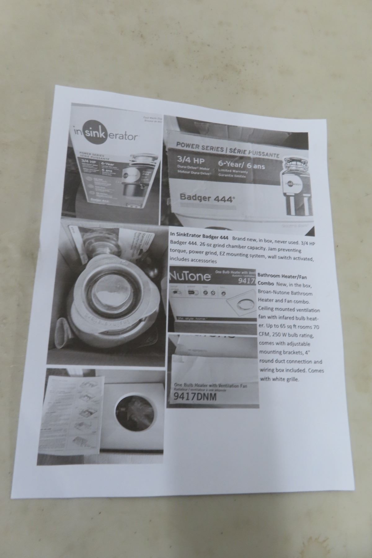 New In Sink Erator Badger 444 3/4 HP Grind Chamber Food Waste Disposer