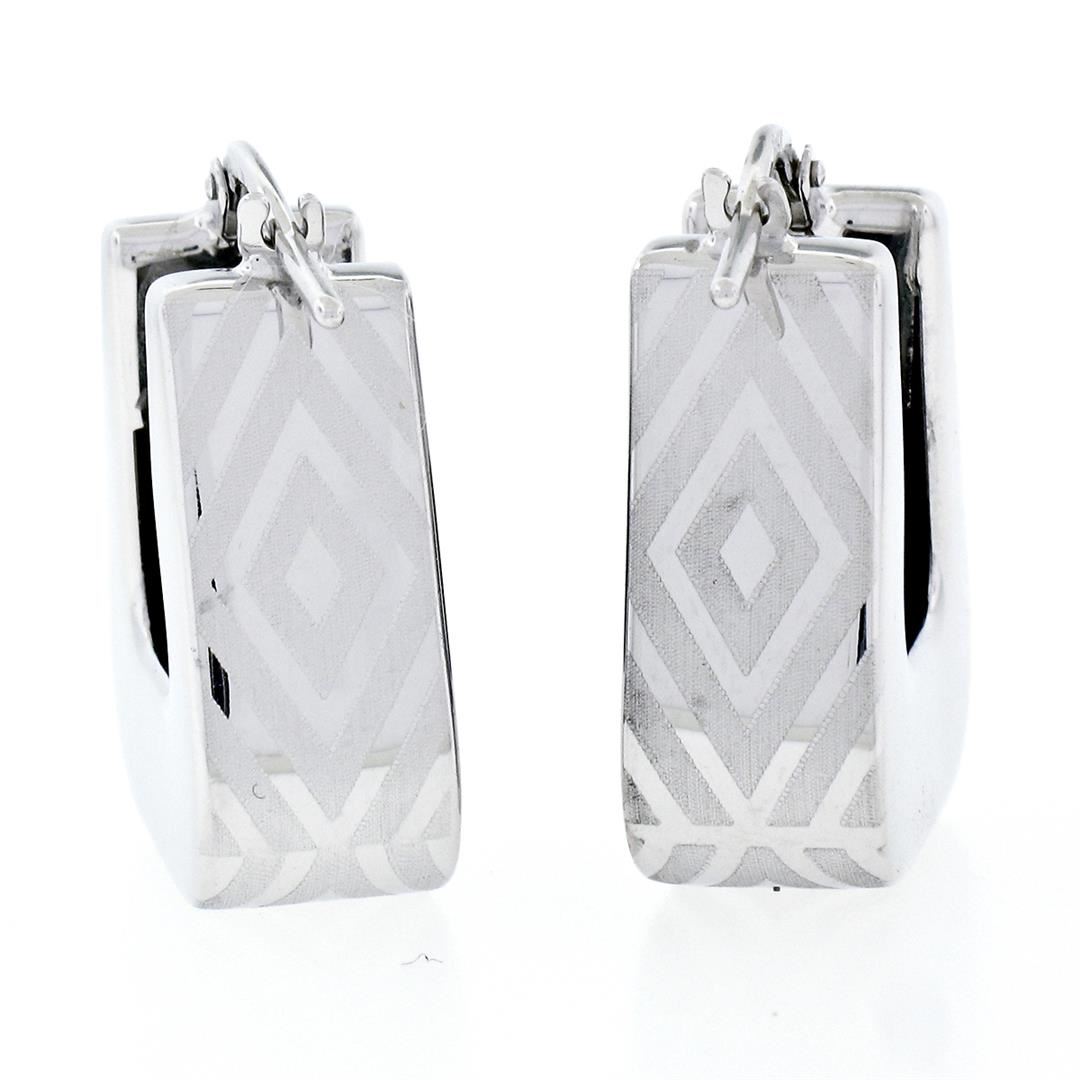 New Italian 14K White Gold Dual Finished Marquise Pattern Huggie Snap Earrings. Please see photos and description for all available information. A new solid 14k white gold italian huggie snap earrings. The earrings measure approximately 17.90x7.25mm and weigh a total of 5.22 grams.