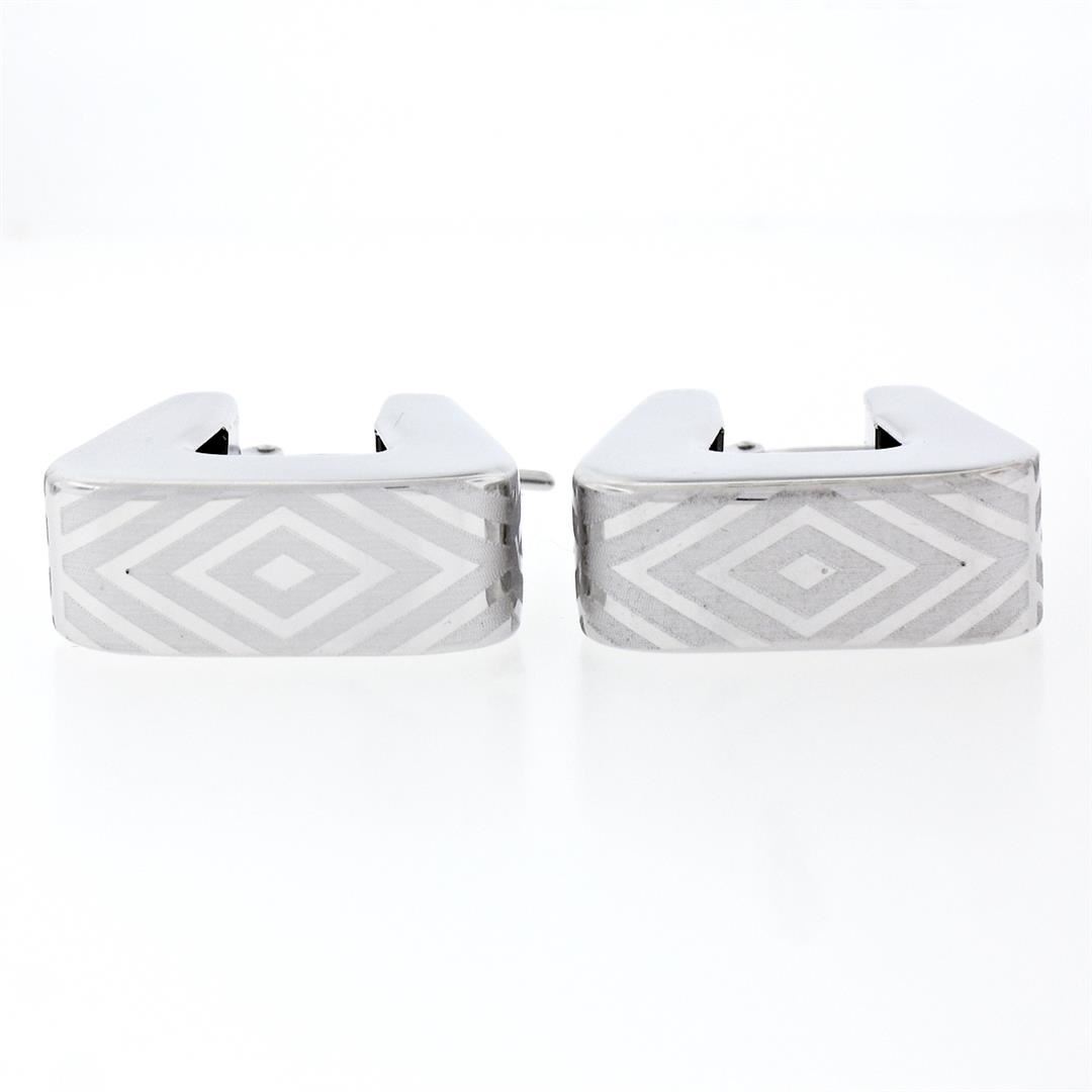 New Italian 14K White Gold Dual Finished Marquise Pattern Huggie Snap Earrings