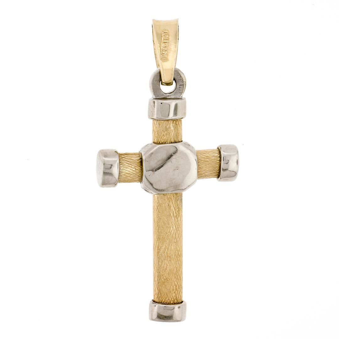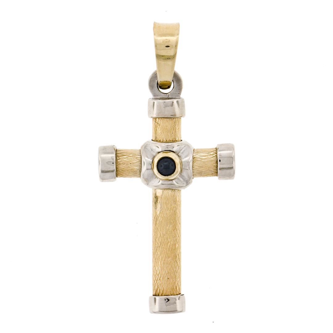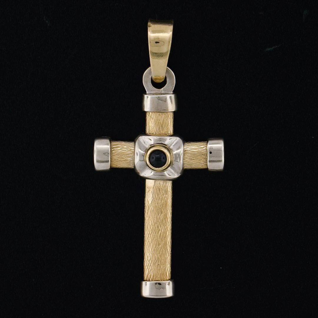 A new solid 14k yellow gold italian croos pendant, with 1 round cabochon cut natural black onyx (2.50mm). The pendant weighs a total of 4.1 grams, measures 40.0x18.55mm including the bail, and the inside of the bail measures 6.0x3.75mm.