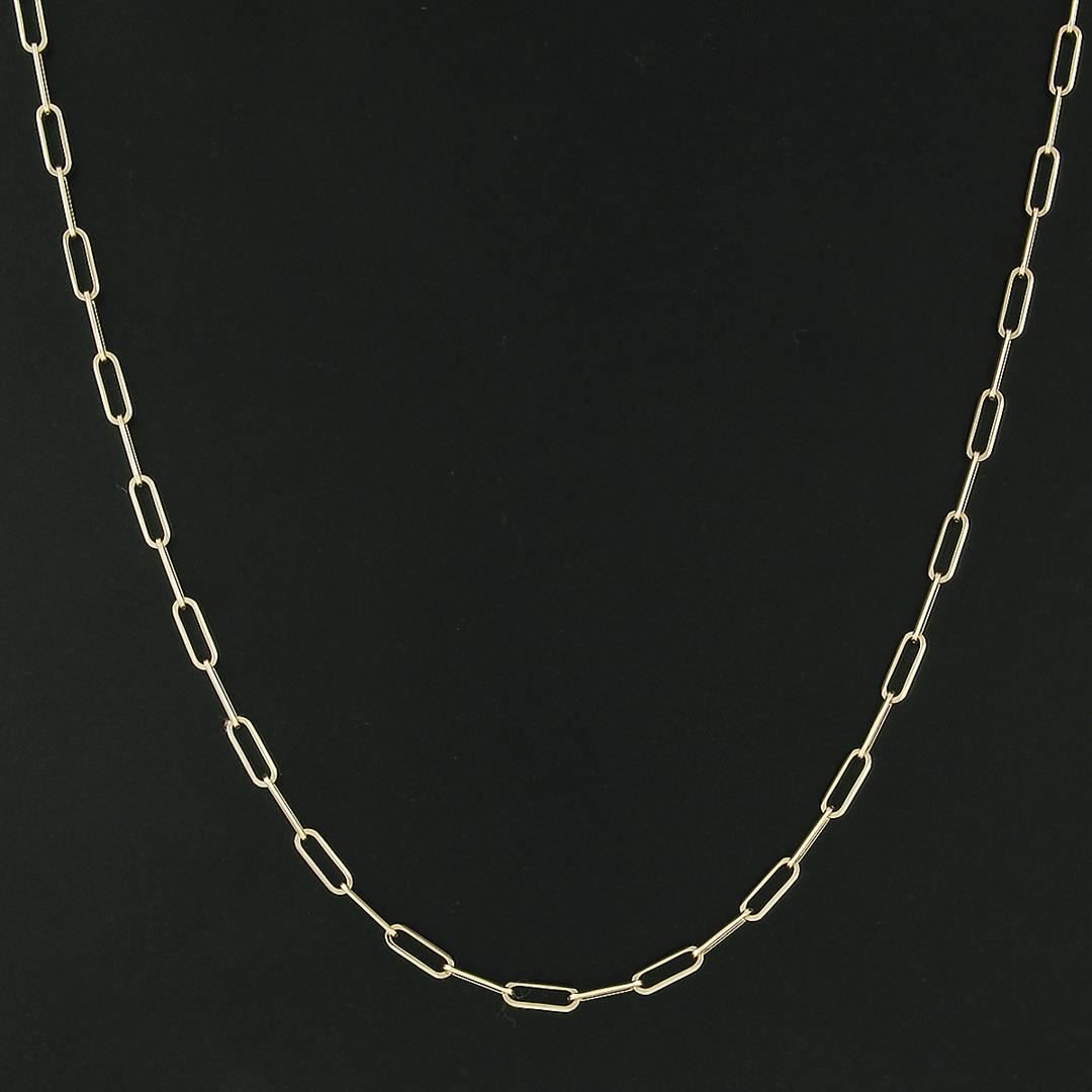 A new italian solid 14k yellow gold chain necklace. 22 inch open oval paperclip link chain, 7.48 grams total weight, pendant measures 3.5x2.3mm.