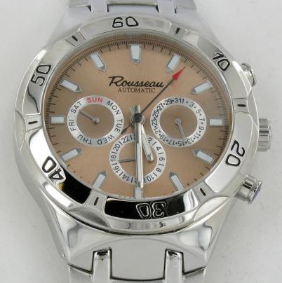 Brand New men's stylish sport CHRONOGRAPH style watch in excellent new condition with 24-hour, day , and date dials; stainless case and band; box and papers; retail $2495