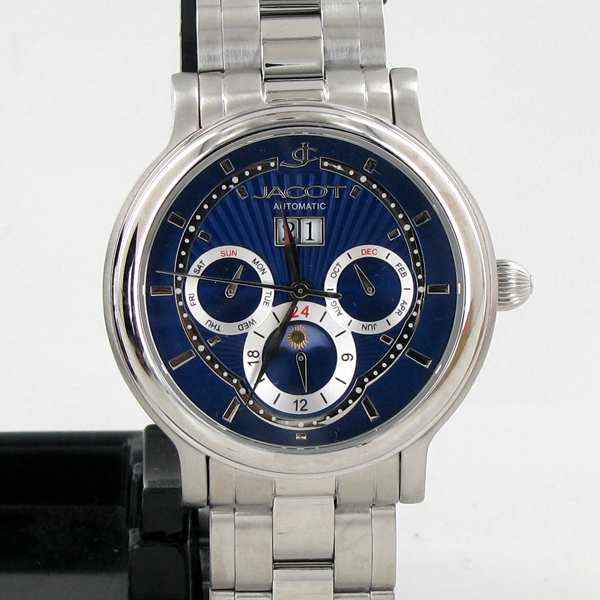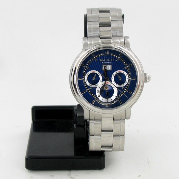 Brand New men's stylish sport CHRONOGRAPH style watch in excellent new condition with 24-hour, day , and date dials; stainless case and band; box and papers; retail $2495