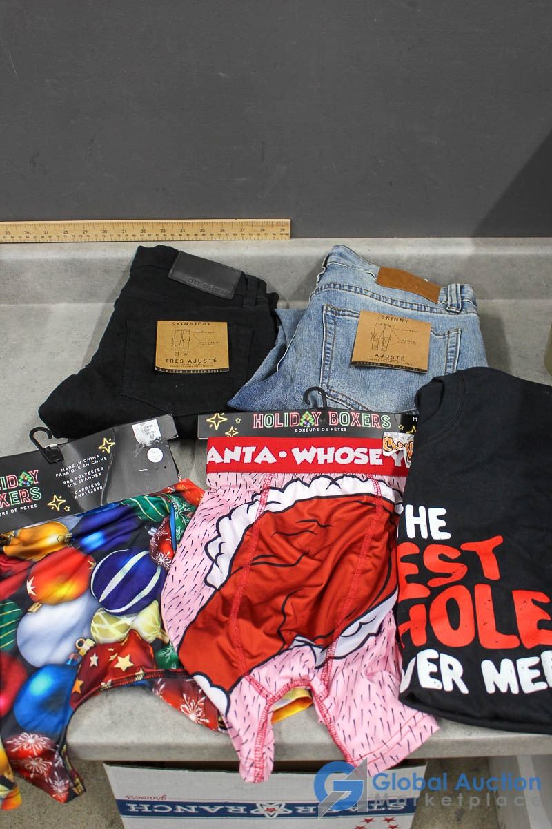 Both Jeans 30/30, Shirt is Large, (1) Small & (1) Medium Boxers