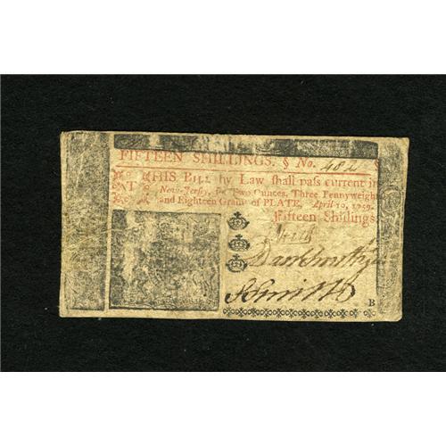 New Jersey April 10, 1759 15s Very Fine. This de