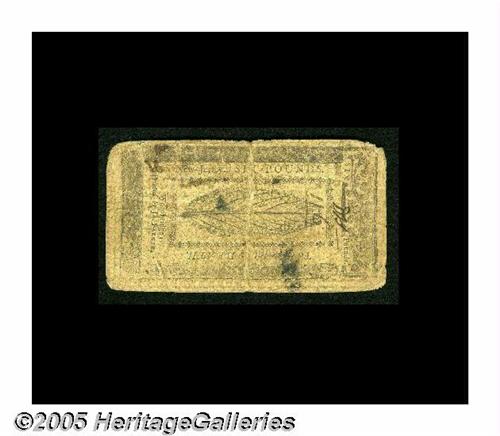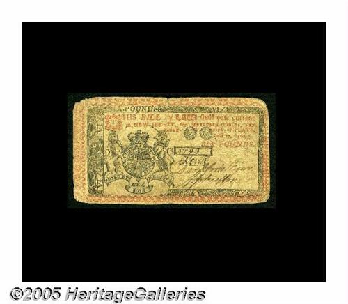 <B>New Jersey April 12, 1760 L6 Very Fine.</B></I> The corners are rounded, but the note is totally free of restorations, with three strong signatures, complete legibility of every word and a nice overall appearance. Tough to find this nice.