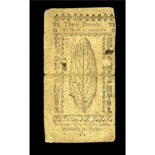 <B>New Jersey April 16, 1764 L3 Very Fine.</B></I> A rare note in all grades. This example is well-signed, with no problems save for two minor stains on the back. The centerfold is slightly weak, but it has not been reinforced as so often is the case.