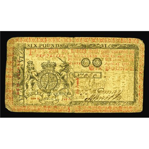 New Jersey April 23, 1761 L6 Fine-Very Fine. The colors New Jersey April 23, 1761 L6 Fine-Very Fine.
