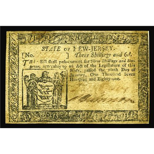 New Jersey January 9, 1781 3s6d Extremely Fine. A decen New Jersey January 9, 1781 3s6d Extremely Fi