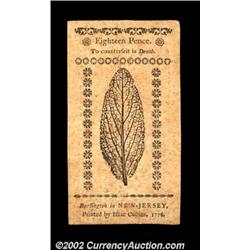 New Jersey March 25, 1776 18d Choice About New. A decent example of this common New Jersey issue. Important notice: We expect to be auctioning lots at the rate of 200-250 per hour. Sometimes eBay Premier live bid software cannot keep up with that pace, so we strongly recommend that you place a realistic proxy bid now as insurance to avoid disappointment. Also please note that all Heritage/CAA lots purchased through eBay Premier carry a 20% Buyer's Premium. Please make sure you read the Terms and Conditions.