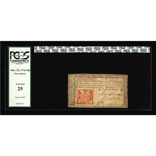 New Jersey March 25, 1776 18d PCGS Very Fine 25. A stro New Jersey March 25, 1776 18d PCGS Very Fine