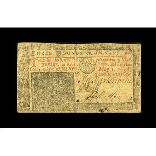New Jersey May 1, 1758 $3 Extremely Fine. This is a sp