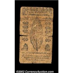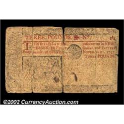 New Jersey November 20, 1757 $3 Fine. There are splits at the top and bottom of the center fold, but the note is original, unrestored and otherwise problem-free. All of the text on both sides is legible, the signature and numbers are weak. This is one of only 3,500 pieces originally printed nearly 250 years ago. Important notice: We expect to be auctioning lots at the rate of 200-250 per hour. Sometimes eBay Premier live bid software cannot keep up with that pace, so we strongly recommend that you place a realistic proxy bid now as insurance to avoid disappointment. Also please note that all Heritage/CAA lots purchased through eBay Premier carry a 20% Buyer's Premium. Please make sure you read the Terms and Conditions.