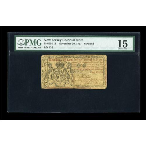 New Jersey November 20, 1757 £6 PMG Choice Fine