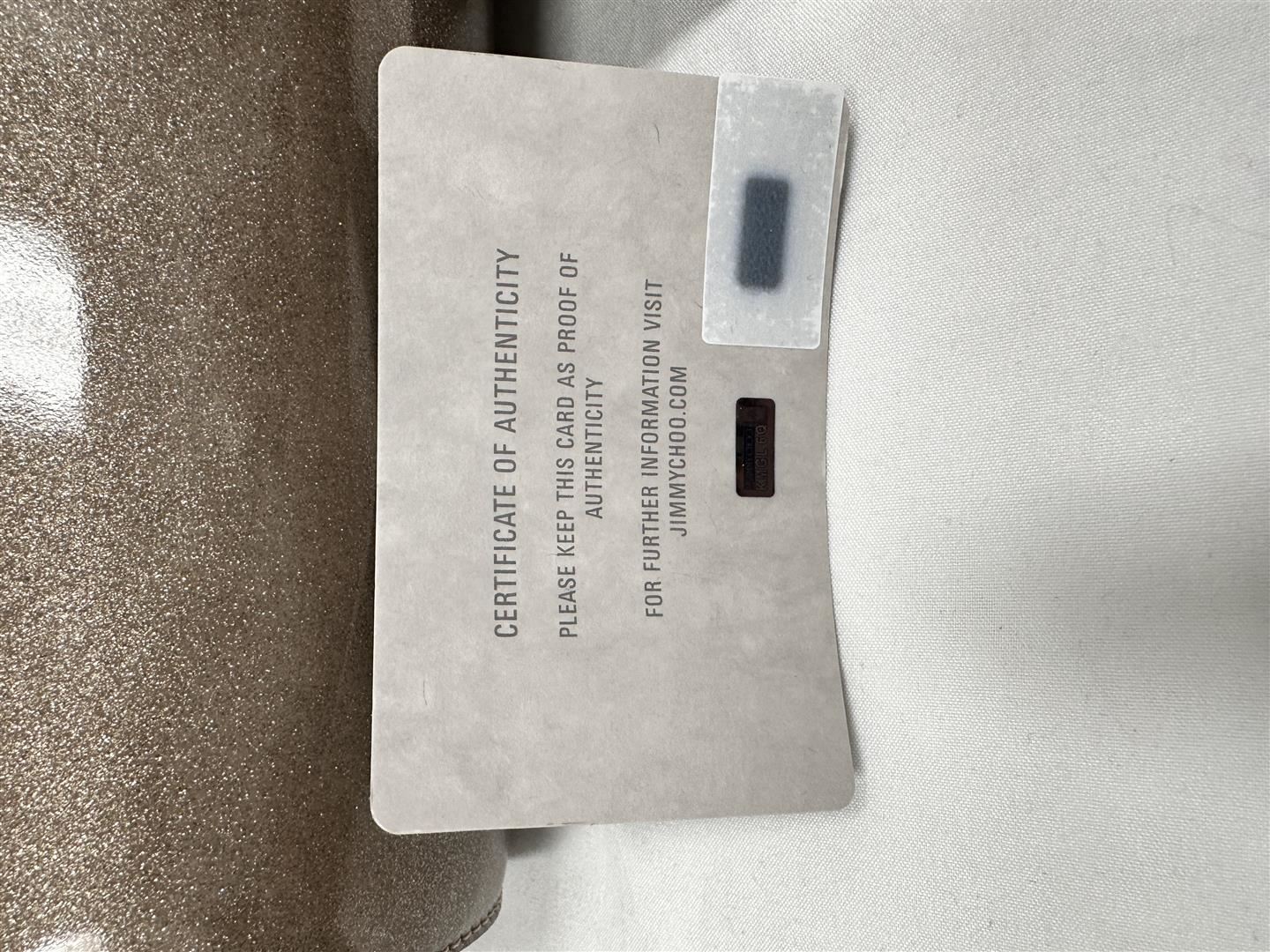 One New Jimmy Choo Glitter Patent Trinket Clutch.