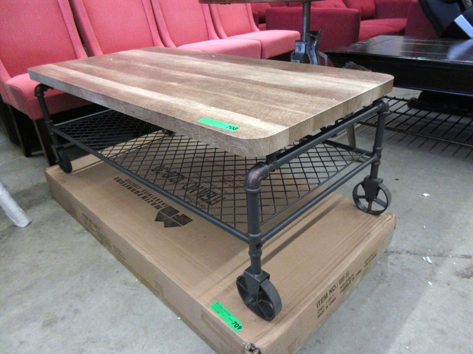 Industrial Style. Wood top. Metal base with shelf. 25" x 47" x 17" tall. Unassembled in box