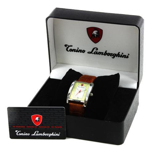 Brand New Tonino Lamborghini men's stylish sport style tank shaped watch in excellent new condition with stainless case and leather band; box and papers; retail $1995