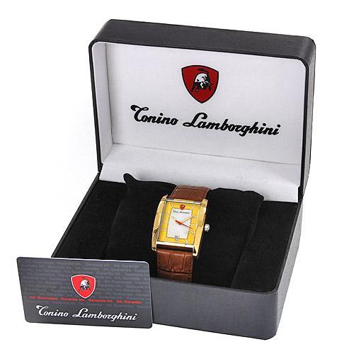 Brand New Tonino Lamborghini men's stylish sport style tank shaped watch in excellent new condition with 18k clad stainless case and leather band; box and papers; retail $2495