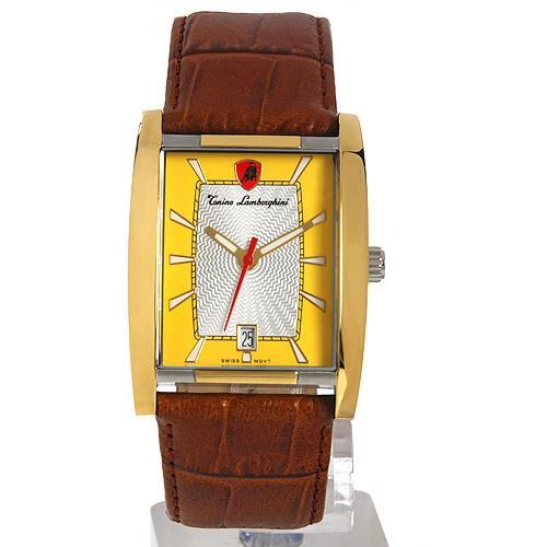 Brand New Tonino Lamborghini men's stylish sport style tank shaped watch in excellent new condition; photo represents style- available color combos will be emailed to winning bidder; with18k clad stainless case and leather band; box and papers; retail $2495