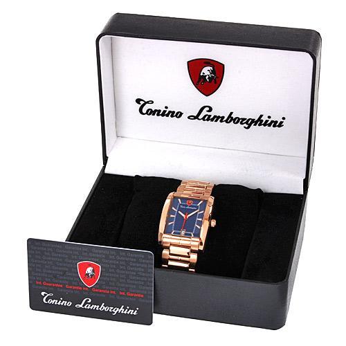 Brand New Tonino Lamborghini men's stylish sport style tank shaped watch in excellent new condition with 18k clad stainless case and band; box and papers; retail $2795
