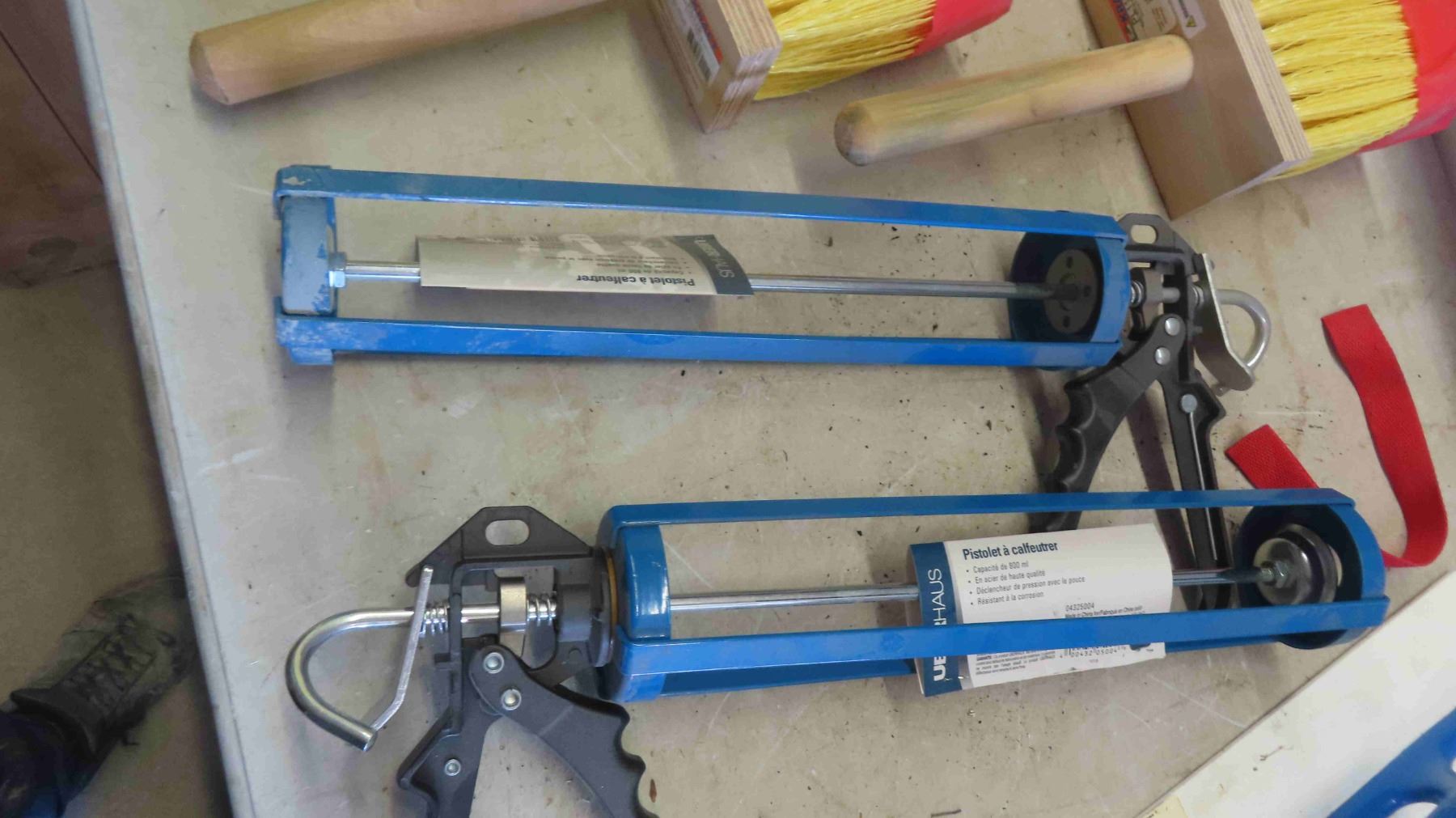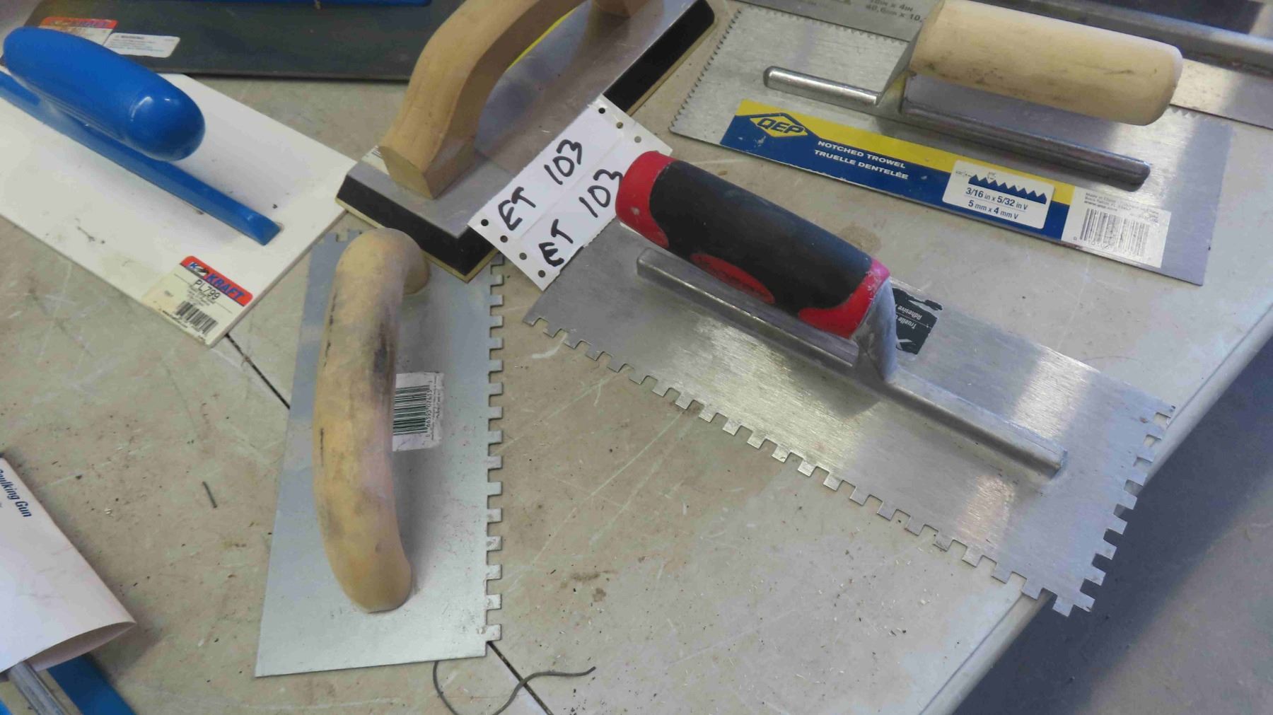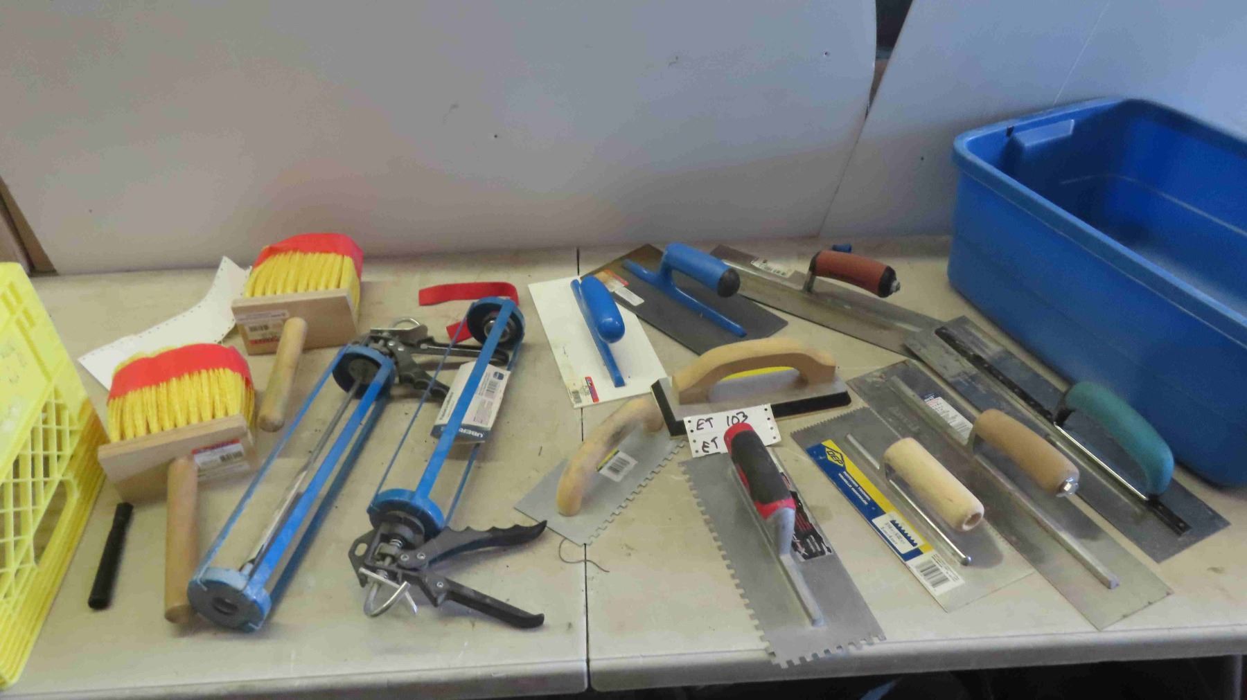 New Large Caulking Guns, Stucco Brackets, Trowels & More in Storage Tub