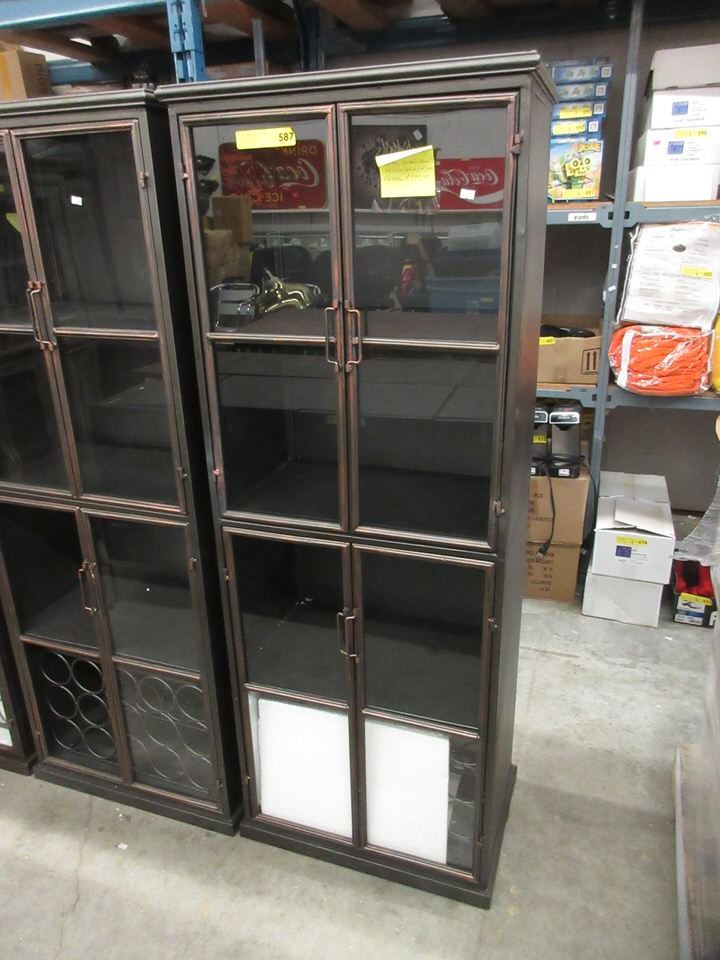 Glass doors. Lower wine rack. 15" x 23" x 63" tall