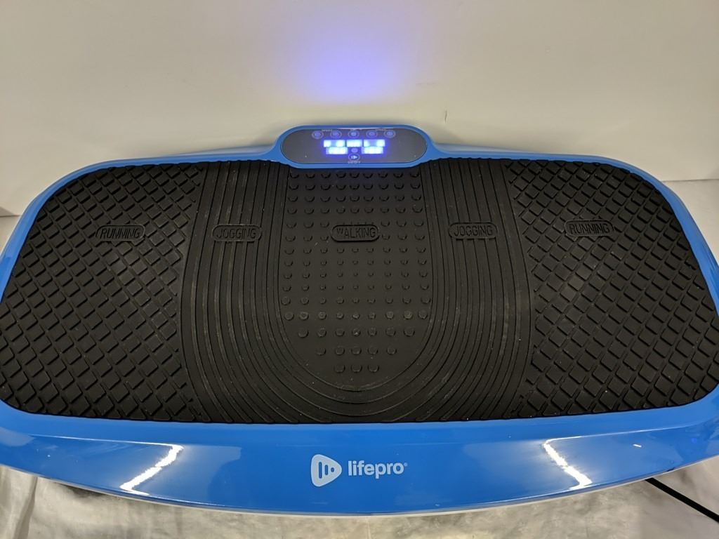 Life Pro Recovery and Fitness Turbo Vibration Plate helps injury recovery. Accelerated workout, has an oscillating seesaw for vertical vibration, massage mode, eight auto programs, 3D spiral combine all modes, quiet motor, Comes with power cord, remote control and resistance bands, New and in box that has been opened, tested for power and settings, model number Turbo 1050