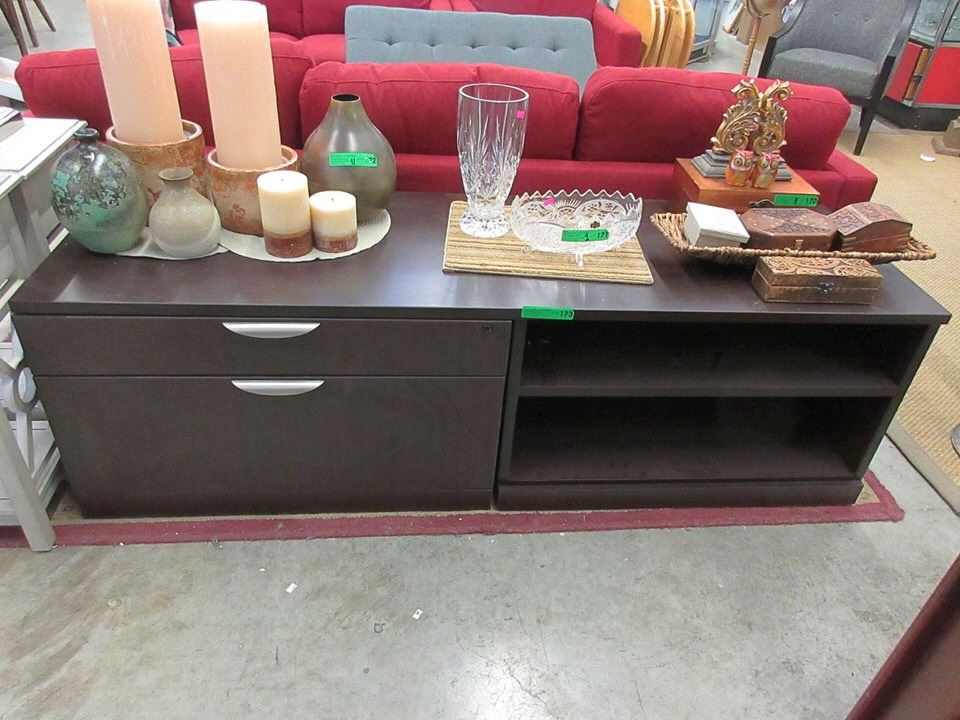 File drawer, drawer & 2 shelves. Key in office. 71" x 22" x 21" tall