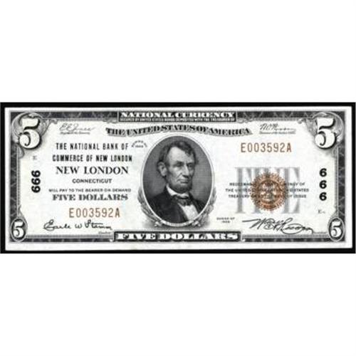New London, CT. $5 1929 T1. Ch#666. CH Crisp UNC.