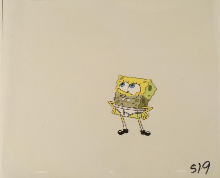 This original animation cel is from the Nickelodeon TV show SpongeBob Squarepants. The story takes place under the deep blue sea in Bikini Bottom, where SpongeBob resides. SpongeBob, who is a yellow, porous sponge, is your typical happy-go-lucky character, as he is always cheerful and enjoys making people laugh. Patrick Star, SpongeBob's neighbor who is a starfish, is your average children's show idiot, as he boasts knowing nothing and is often getting himself into ridiculous situations. Between the homes of these two lies the home of the miserable Squidward, a squid, who is known for being grouchy and playing tricks on SpongeBob and Patrick. Both SpongeBob and Squidward work at the Krusty Krab, a fast food business run by the greedy money-loving Mr. Krabs, a crab, the arch rival of the evil, possibly misunderstood, Plankton. Another neighbor, Sandy Cheeks, an athletic squirrel who normally wears an astronaut's space suit, was introduced in "Tea at the Treedome." She spends most of her time inventing and experimenting. * Original Production Animated Cel Overall Size of Cel: 10 1/2" x 12 1/2" Excellent Condition This is an original hand-painted cel set-up used in the production of an episode of "SpongeBob SquarePants." Each one-of-a-kind set-up represents a slight change in position of the characters. When individually photographed and projected in rapid succession, the images appear to move. * To create production cels, the original animator's drawing is transferred onto an acetate cel (by hand-inking and/or photo copying). The cel is then hand-painted on the reverse side. * The cel is ready to be matted and framed. The animator's notations are at the bottom of the cel. *
