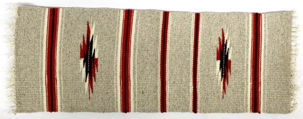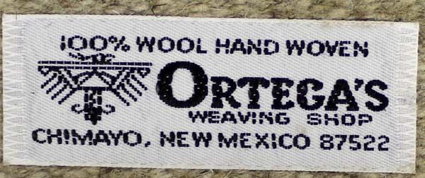 Chimayo Fringed Wool Textile, measures 10'' x 28'' and is fringed on both ends, comes with original tag which reads ''100% Wool, Hand Woven, Ortega's Weaving Shop, Chimayo, New Mexico 87522, nice tight weave in beautiful colors