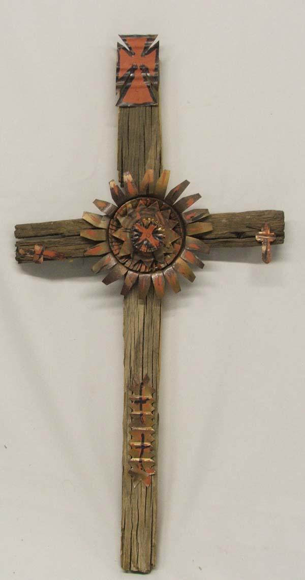New Mexico Barn Wood & Metal Cross. Measures approx. 23'' x 12''. Buyers Pay Actual Shipping and Handling Charges(see terms and conditions for more information).