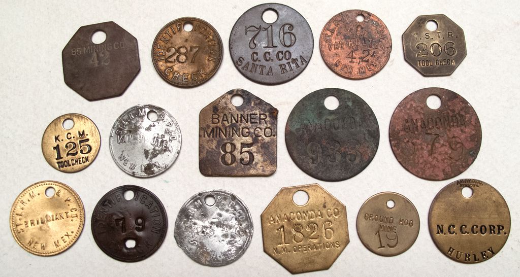 Lot of 16 various inspection and tool tags. Representative businesses include Kennecott Chino Mines, Anaconda, and the 85 Mining Company, among others. In 1915, the Vanhouten increased in size to about fifteen hundred residents and supported two hotels, the Blossburg Mercantile Company, and several saloons among a number of other businesses. Pieces are in fair to very good condition.