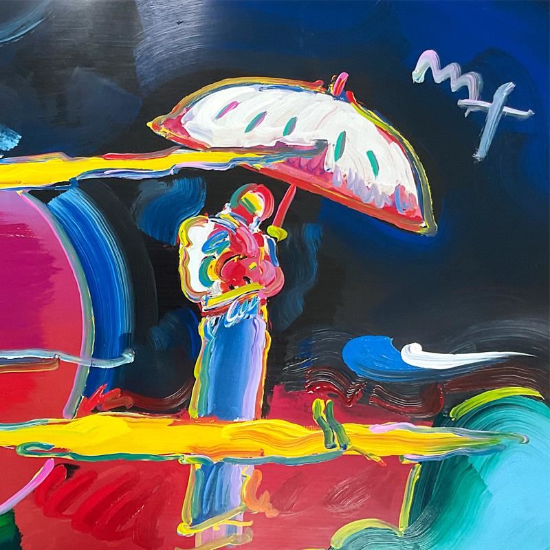 "New Moon" is a one-of-a-kind acrylic mixed media on paper, hand signed by Peter Max. The piece comes custom framed with a backside cutout to display Peter Max Studio registration number 251939 certifying authenticity. Measures approx. 36.5" x 48.5" (frame), 24" x 36" (image). This item requires special handling and may have a longer than usual turnaround.