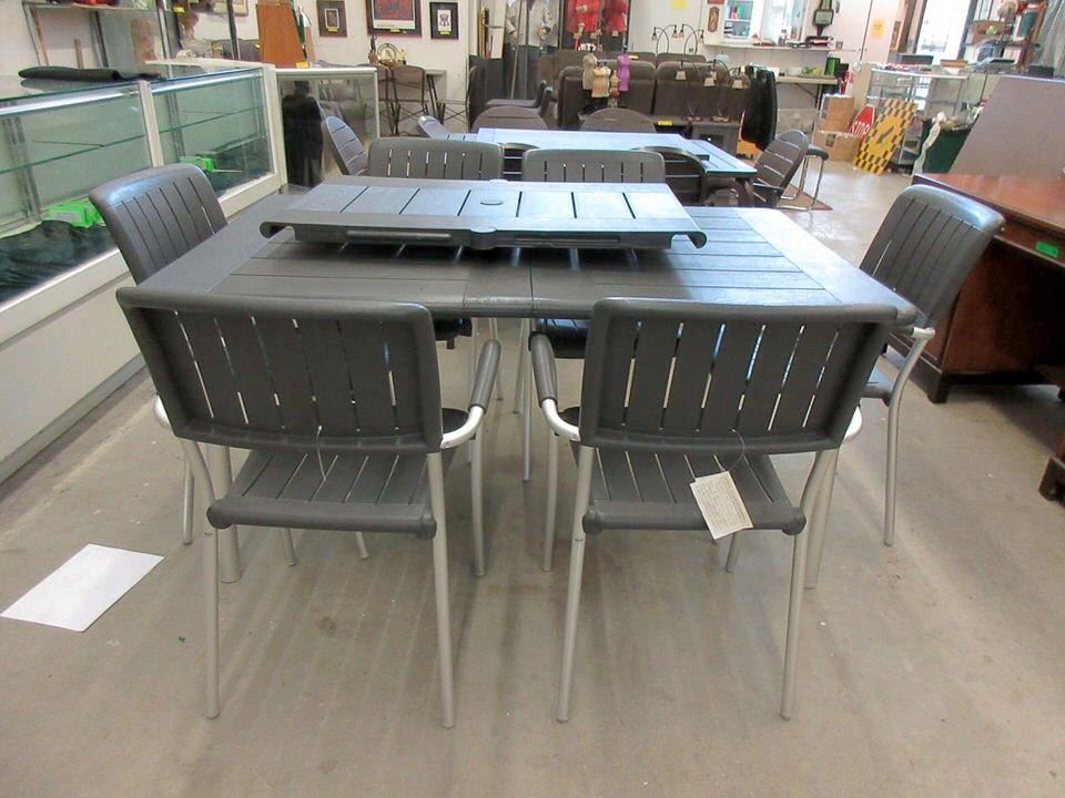 Table surface is 39" x 87" when leaf is in. Metal framed