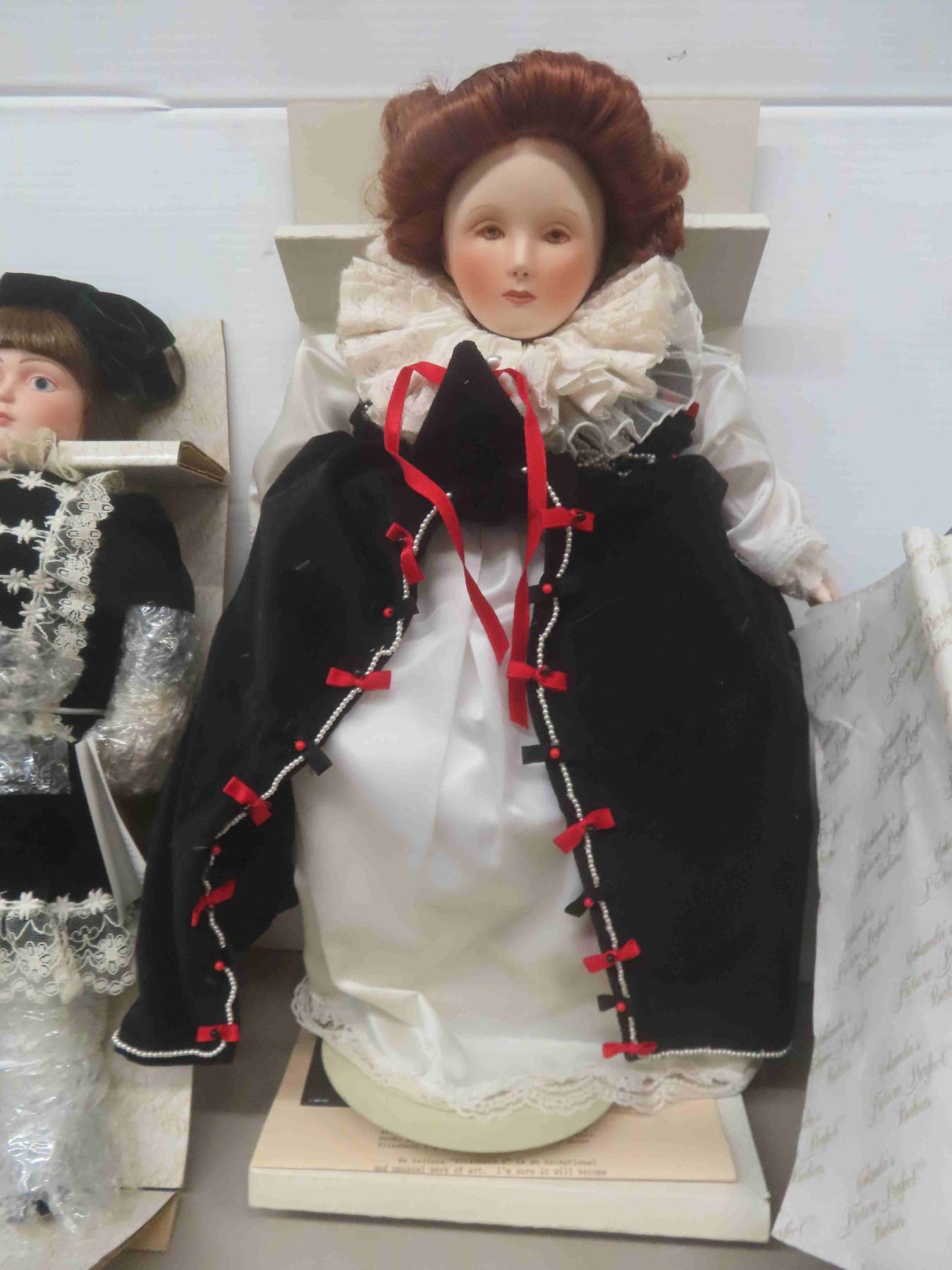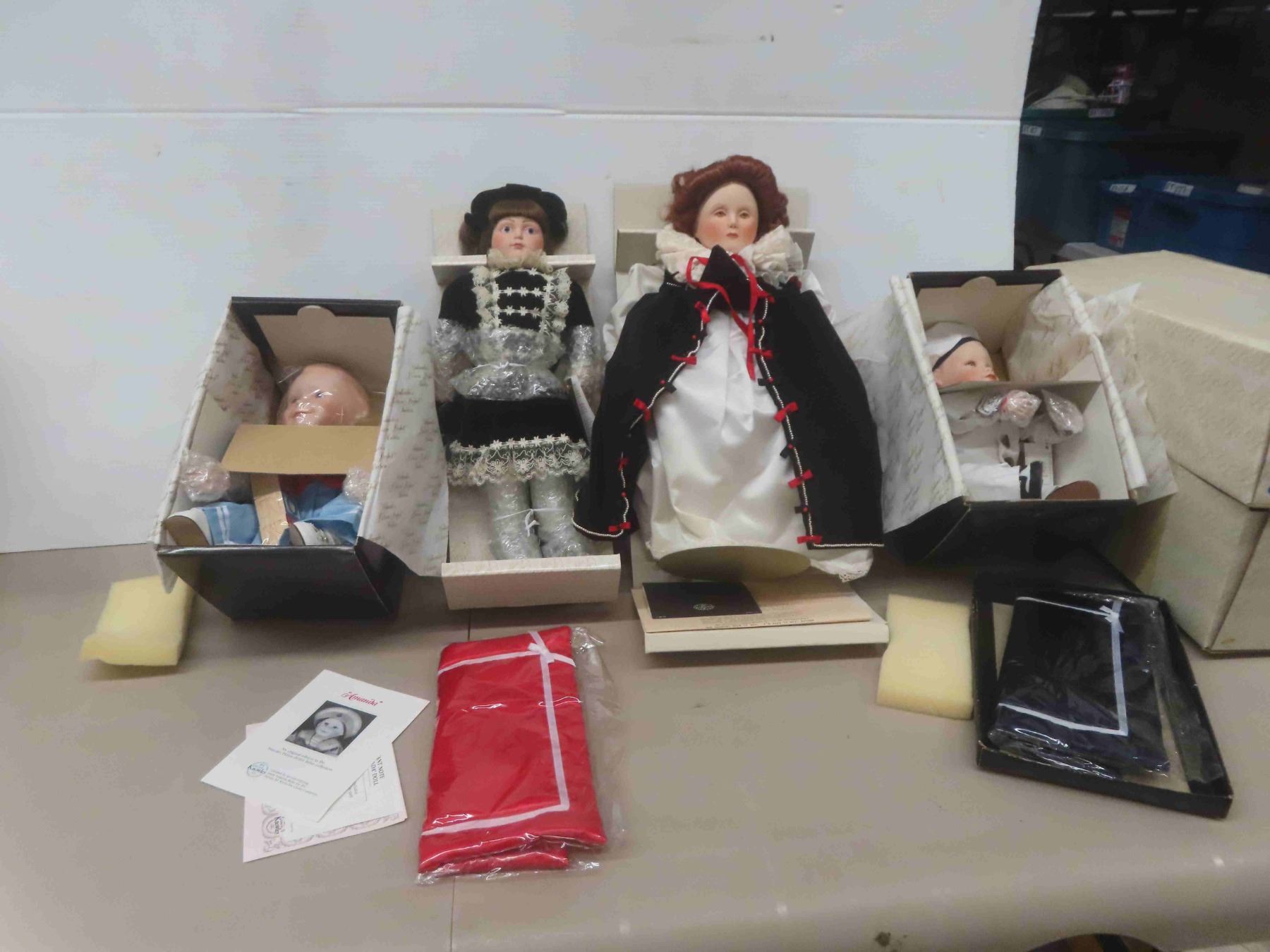 New Old Stock 4 Porcelian Collector Dolls Tallest 17 1/2" w/ Orginal Boxes