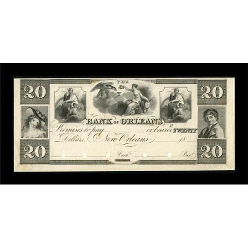 <B>New Orleans, LA- Bank of Orleans</B></I> $20 18 __ G38 Proof<BR> The last of these rare Proof examples. <B>About Uncirculated,</B></I> 5 POC, mounted on light card stock. <BR><I>From The Collection of a Louisiana Gentleman.</B></I><BR><BR><b>Shipping:</b> Coins & Currency (<a target="_blank" href="http://www.heritageauctions.com/common/shipping.php">view shipping information</a>)