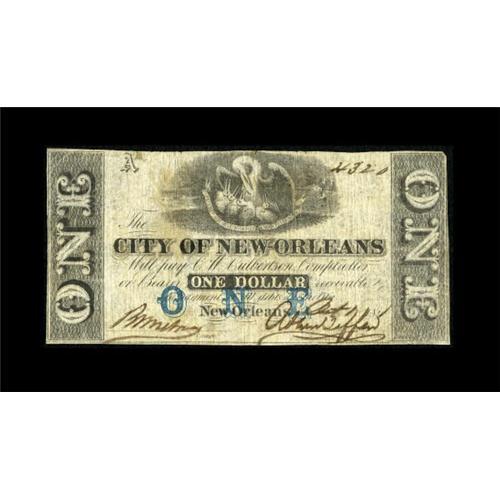 <B>New Orleans, LA- City of New Orleans</B></I> $1 Oct. 1, 1861 <BR> A very scarce early Civil War era municipal issue. <B>Fine+++.</B></I><BR><I>From The Collection of a Louisiana Gentleman.</B></I><BR><BR><b>Shipping:</b> Coins & Currency (<a target="_blank" href="http://www.heritageauctions.com/common/shipping.php">view shipping information</a>)